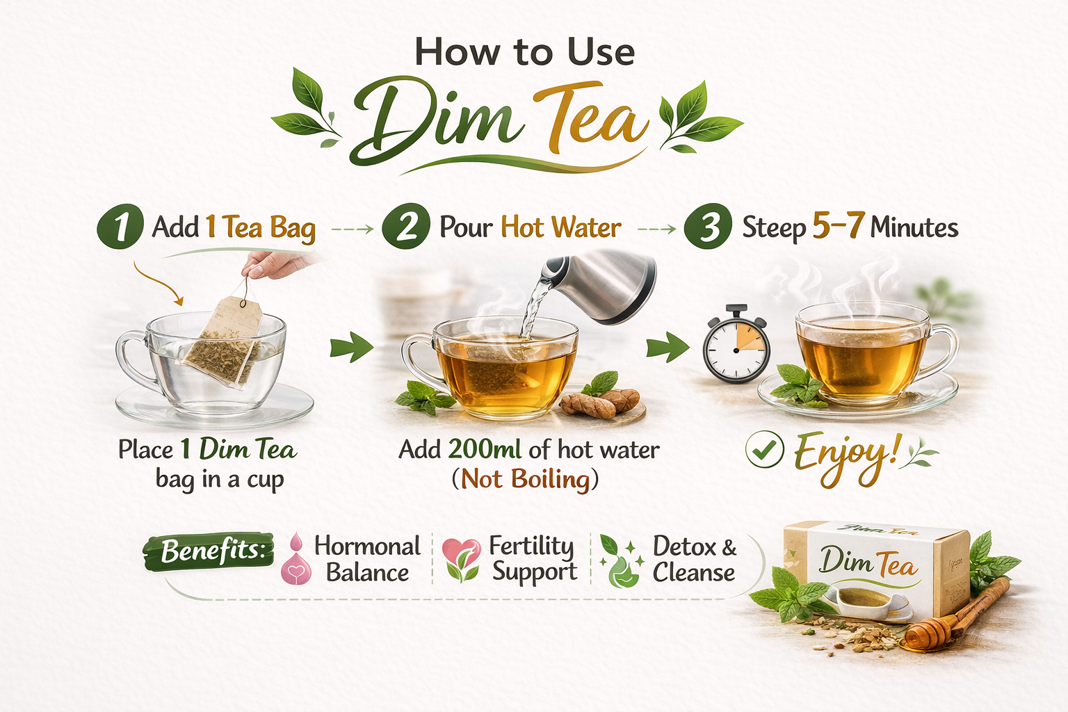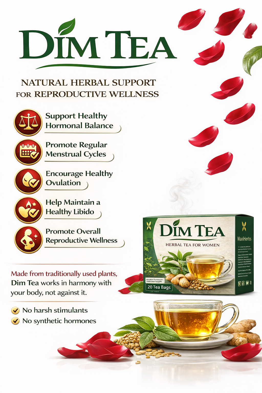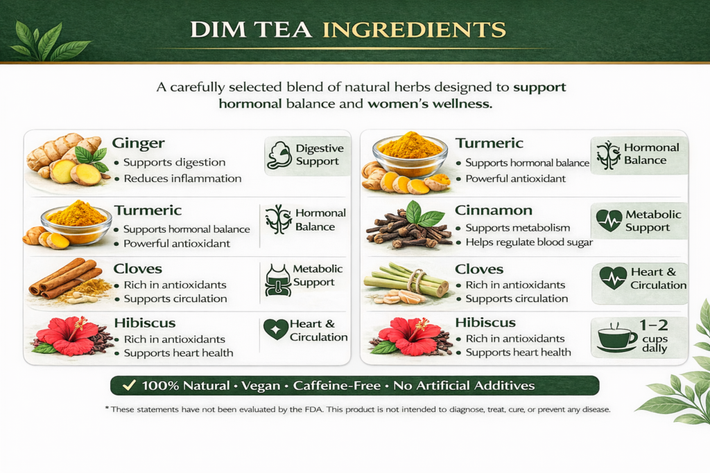 Dim Tea is crafted from nature’s most trusted herbs for women’s hormonal support. 🌿